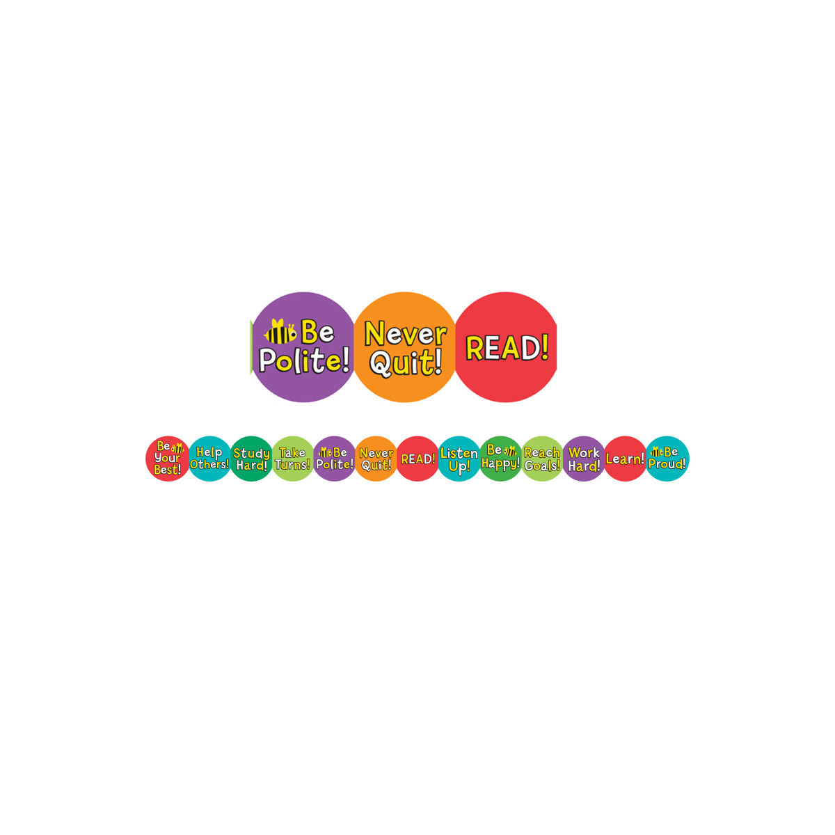 Be Your Best is the positive theme of these engaging bulletin board borders. Your students will be inspired with messages such as never quit, study hard, help others and be happy while they look at their classroom bulletin boards and walls. Each pack includes 12 strips measuring 3" x 36", for a total of 36 feet of border.