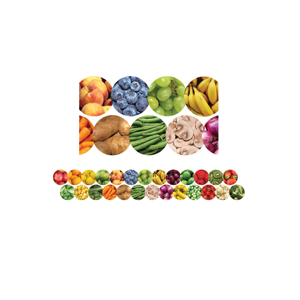 Teach healthy eating to children with the Hygloss Classroom Border - Fruits / Veggies border, and have your students flock to their refrigerators to eat tasty red apples, or crunchy green cucumbers as soon as they get home from school. These classroom borders have rows of yummy blueberries, grapes, bananas and other fruits, as well as rows of sliced mushrooms, fresh string beans, peas and more, to help you teach your students about the great qualities of nature's fruits and vegetables. Each pack includes 12 strips (6 strips each of fruit and vegetables) measuring 3" x 36", for a total of 36 feet of border.