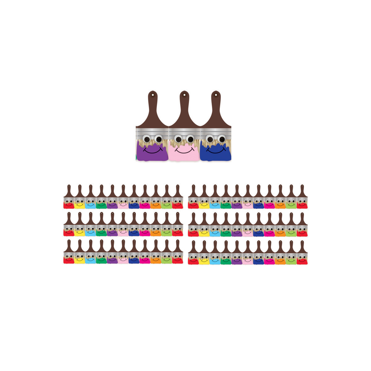 Kids will really enjoy the Hygloss Happy Paintbrushes classroom border lining their bulletin boards, windows or walls. These uplifting and colorful paintbrushes look happy and content as they add a decorative and charming feel to any youngsters classroom. Strips measure 3" x 36". Each pack includes 12 strips for a total of 36 feet of border. Sold as 6 packs for a total of 216 feet of border.