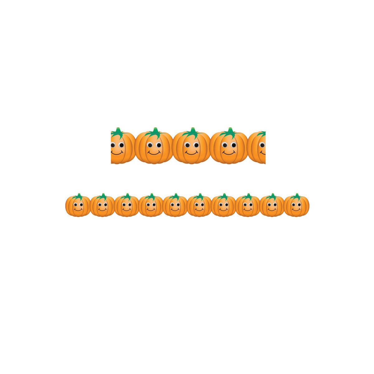 The Classroom Border - Happy Pumpkin borders can be a pleasant bulletin board decoration at any time of year, but you may best want to save these lovely classroom decorations for Halloween or for fall lesson plans. Each pack includes 12 strips measuring 3" x 36", for a total of 36 feet of border.