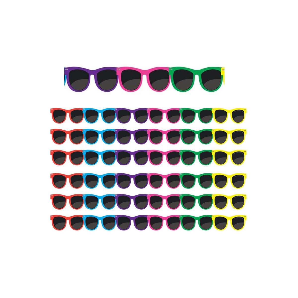 Sunny days are here and it's the perfect time to try on those sunglasses! This original die-cut border features 8 pairs of bright, realistic looking sunglasses. Use it to decorate a summer-themed or beach-themed bulletin board, or showcase your students' work with a caption - "LOOK what we've learned!". This sunglasses trim will look sharp and attractive around a bulletin board, window, hallway or poster. Each pack includes 12 strips measuring 3" x 36", for a total of 36 feet of border. Sold as 6 packs for a total of 72 strips.