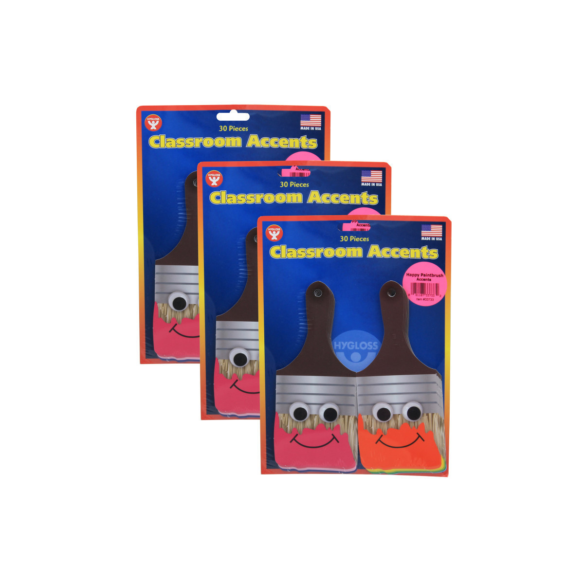 Choose Happy Paintbrush Accents from our selection of Classroom Accents, made of card stock paper, and use as a classroom decoration to put a smile on everyone's face, as well as an innovative teaching aid. Hygloss die cut Accents are a colorful complement to any classroom! Each pack includes 30 pieces. Sold as 3 packs for a total of 90 pieces.