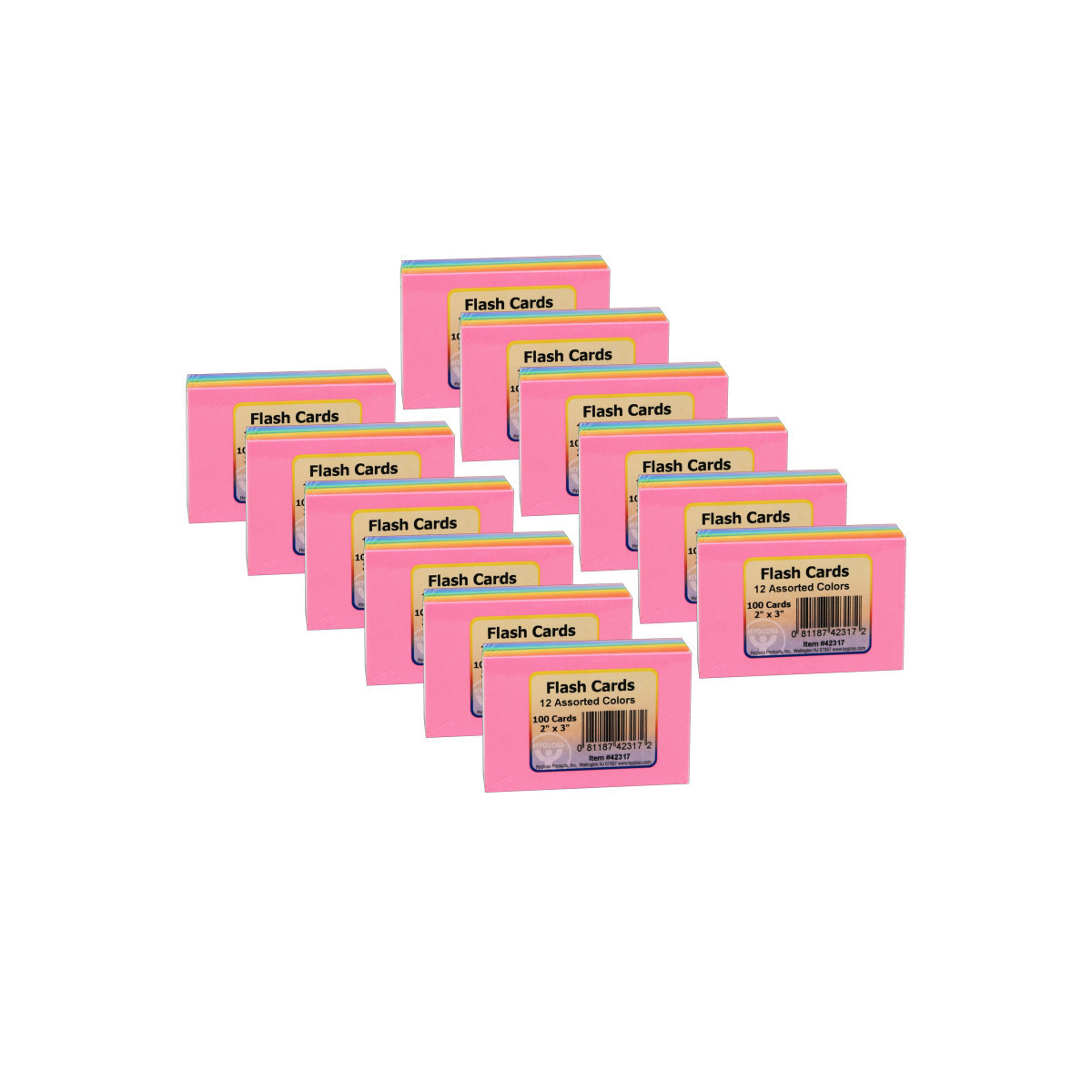 Features 12 colors and white. Index cards measure 2" x 3". Each pack includes 100 index cards. Sold as 12 packs for a total of 1200 index cards.