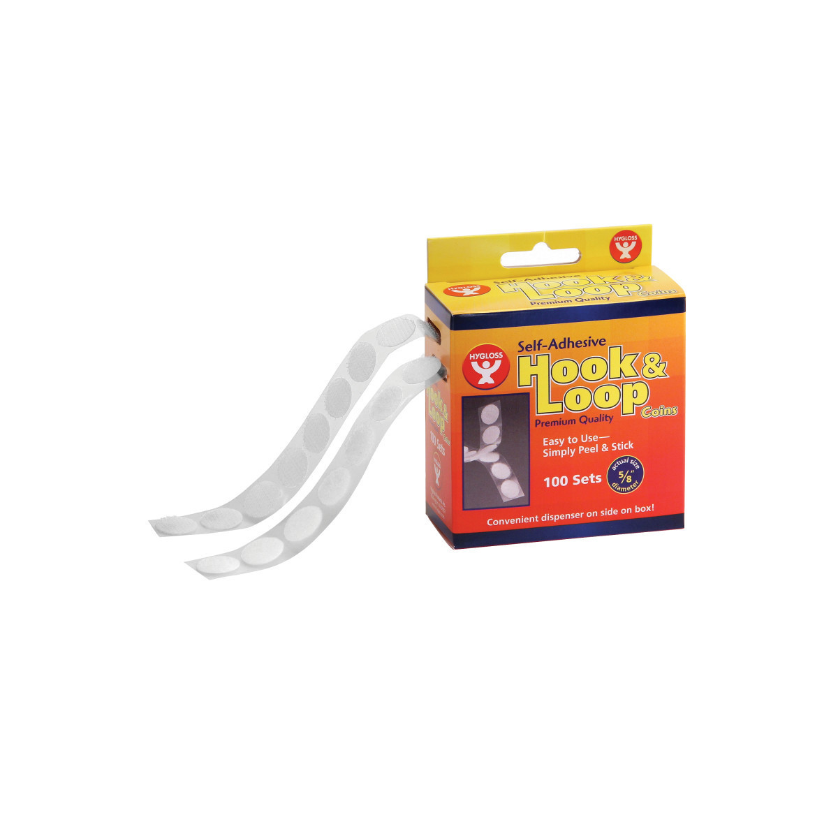 Hook and loop fasteners are a convenient way to display crafts projects and decorations, secure costumes and more. Easy to attach and long-lasting, just peel and stick our adhesive hook and loop fasteners and you're ready to hang. Coins measure 5/8". Each box contains 100 coins.
