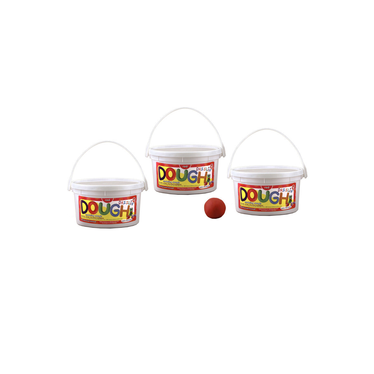Dazzlin' Dough! The non-toxic, long-lasting, premium quality modeling dough that is all-natural and made in the USA. An activity guide with instructions is included with each 3 lb. bucket, complete with convenient carrying handle. Sold as 3 buckets for a total of 9 lbs.