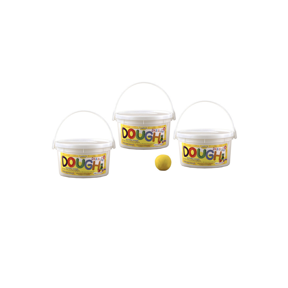 Dazzlin' Dough! The non-toxic, long-lasting, premium quality modeling dough that is all-natural and made in the USA. An activity guide with instructions is included with each 3 lb. bucket, complete with convenient carrying handle. Sold as 3 buckets for a total of 9 lbs.