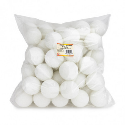 Craft Foam balls are the foundation of many fantastic crafts projects and decorations. Polystyrene Foam is simple to decorate, yet yields professional looking crafts. Use as a base for floral arrangements or craft centerpieces. Teachers love foam balls for science projects and models; you can even create a model solar system with the large selection of sizes! These balls are popular for creating and decorating holiday ornaments and decorations. So get out some tissue paper, sequins, paint and glue, and let your creativity start running! Foam Balls measure 2" in diameter. Each pack includes 100 craft foam balls.