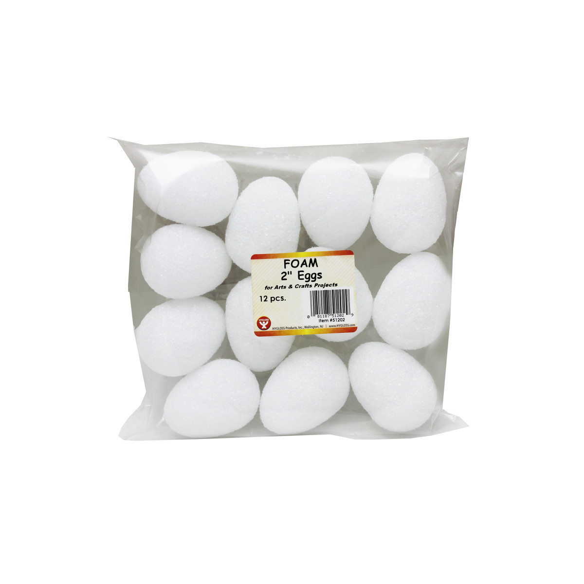 - WHITE FOAM EGGS – Craft Foam is simple to decorate, yet yields professional looking crafts. These white polystyrene eggs measure 2 inches.