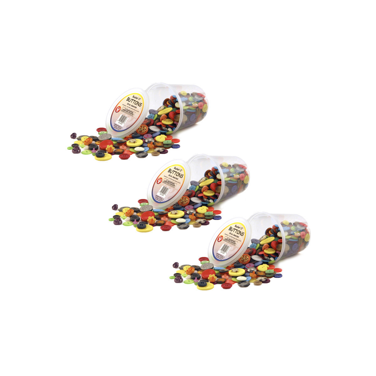From puppets to posters, buttons have been a part of arts and crafts since, well probably since they started falling off of clothing. Now, lucky for us, we don't have to wait until our shirt or pant buttons pop. Hygloss has craft buttons by the bucket! Our buckets contain a wide variety of colorful buttons in an assortment of shapes, colors and sizes, all the ideal supply for hundreds of arts and crafts ideas. Our high quality craft buttons will add pizazz to any project. Sold as a pack of 3 - 16oz. buckets for a total of 48oz of buttons.