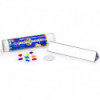 COMPLETE KIT - Included are a white tube, mirror, eyehole, chamber with lens, colorful transparent tiles, and instructions. Everything you need for build your own unique kaleidoscope.
