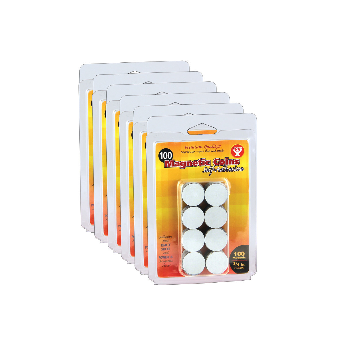 Kids love to see their projects hung with magnets on the fridge, but what if their projects ARE magnets on the fridge?! These convenient pre-cut magnetic coins will stick to virtually any material: wood, metal, paper or plastic, to turn all your kids crafts into decorations for any magnetic surface. Simply peel off the paper backing and stick to the kids crafts of your choice. Great for holiday crafts, birthday crafts, and any occasion. They are also ideal for teachers; attach magnets to word strips or classroom decorations to easily display on a dry erase board. Each pack contains 100 self-adhesive magnetic coins. Sold as 6 packs for a total of 600 magnetic coins.