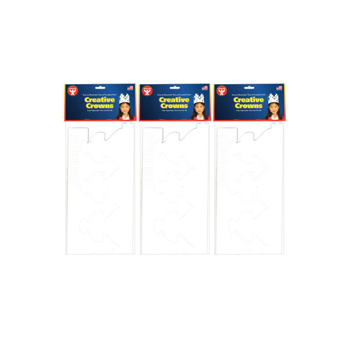 These white card stock crowns are ready-to-go and are great for decorating and personalizing for any occasion. 24 crowns per package. Sold as 3 packs for a total of 72 crowns.