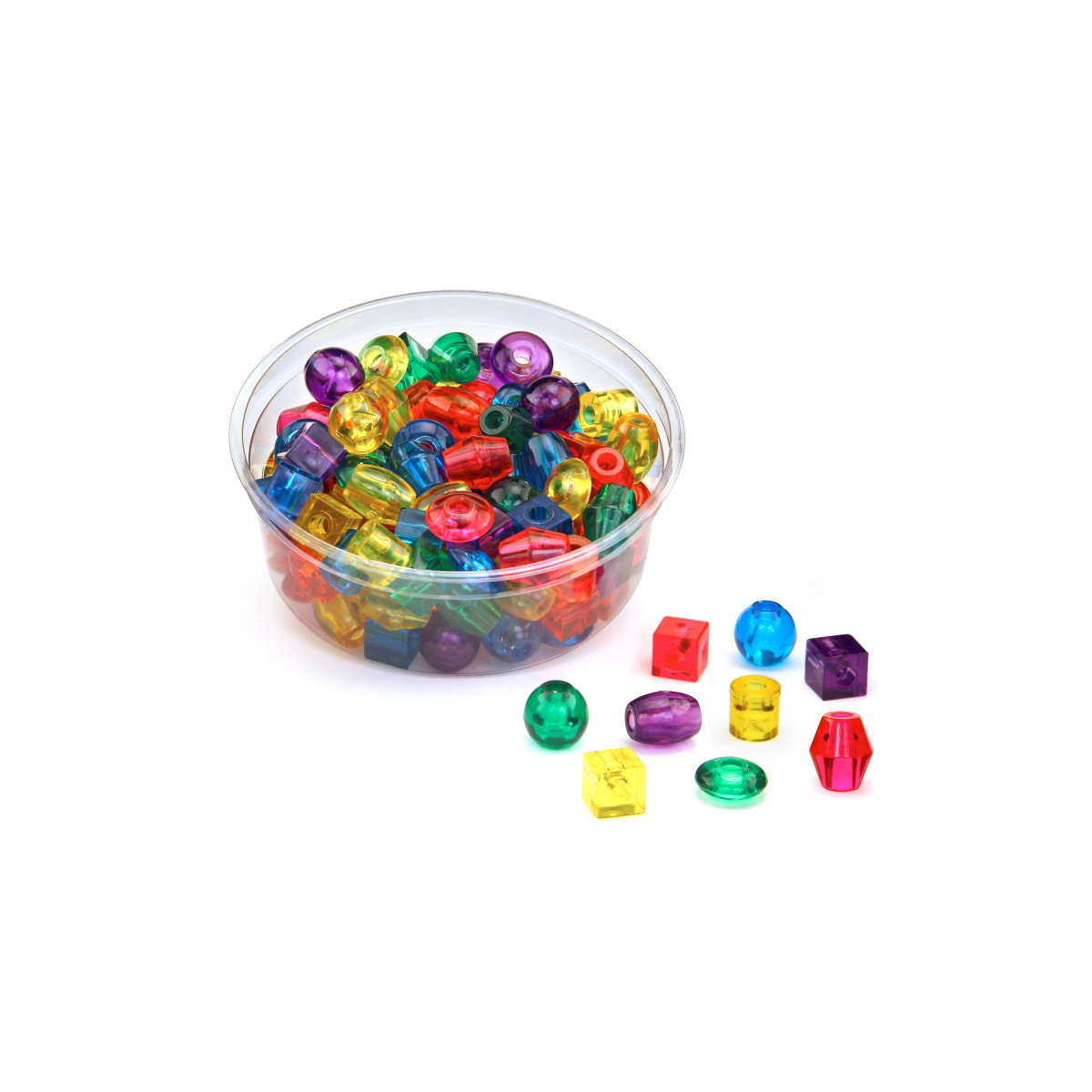 Big Beads are sure to keep little ones stimulated and happy. The beads are excellent quality and can be reused over and over. Help children develop fine motor skills, hand-eye coordination, color differentiation, sorting and grouping with these fun and vibrant Big Beads. Translucent beads come in 6 different shapes: cubes, balls, ovals, saucers, cylinders, bicones. The large holes make it easy to thread. Lacing lanyard included. Beads range in size from 3/4"-1". Preschool teachers enjoy using these beads as a fun and relaxing educational activity. Includes 16 oz (approximately 100 beads).