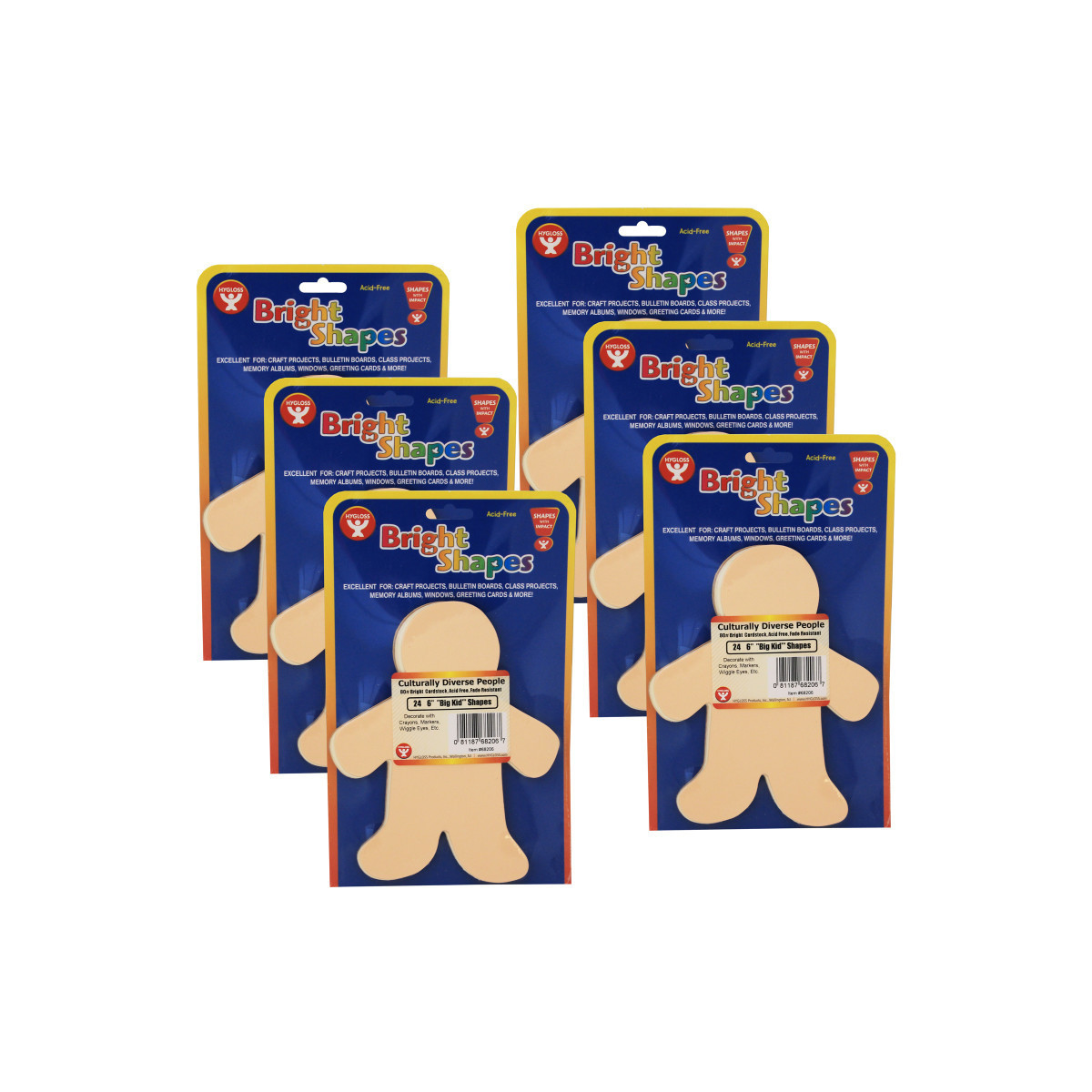 These culturally diverse People Shapes are good for educational projects, teaching aides and bulletin boards. Sturdy enough to accept a variety of mediums. Hygloss 6-inch People Shape Cut-Outs are made from card stock and come in 5 assorted multicultural colors. They are great for any craft project, lesson plan, or as a visual aid for any subject. They are also ideal for greeting cards, locker tags, bulletin boards, etc. Each pack includes 24 pieces. Sold as 6 packs for a total of 144 pieces.
