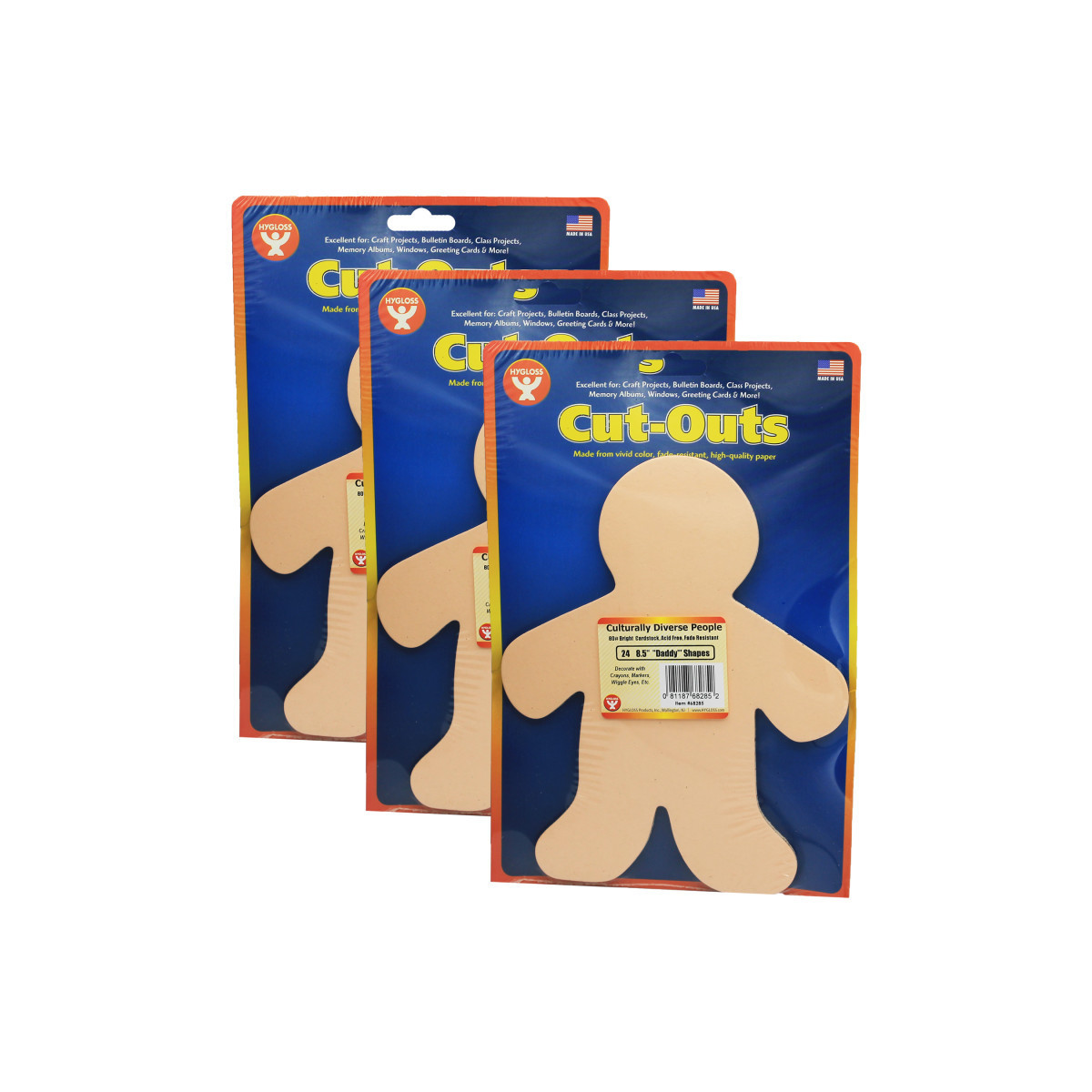 These culturally diverse People Shapes are good for educational projects, teaching aides and bulletin boards. Sturdy enough to accept a variety of mediums. Hygloss 8.5-inch People Shape Cut-Outs are made from card stock and come in 5 assorted multicultural colors. They are great for any craft project, lesson plan, or as a visual aid for any subject. They are also ideal for greeting cards, locker tags, bulletin boards, etc. Each pack includes 24 pieces. Sold as 3 packs for a total of 72 pieces.