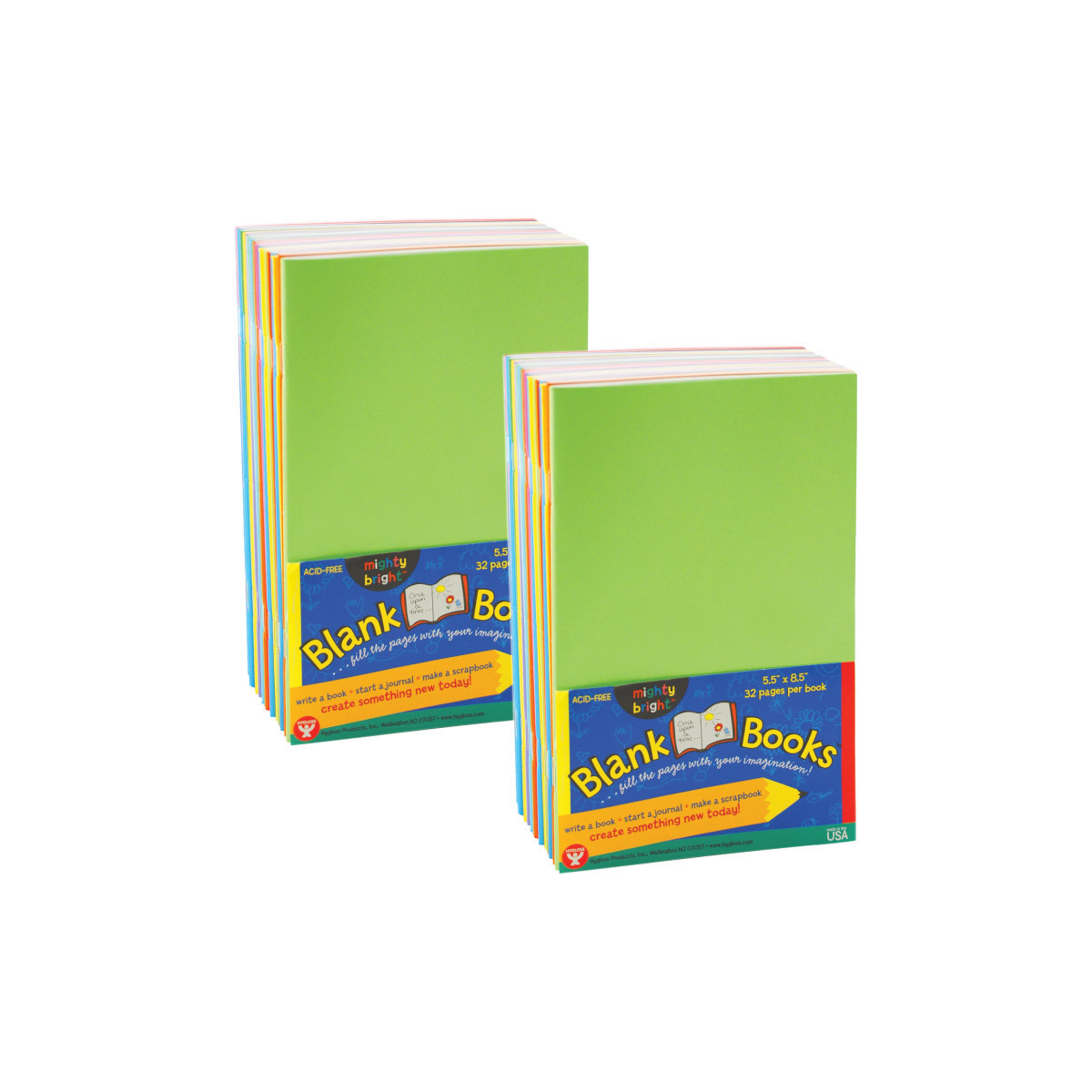 These colorful paperback books are made from Bright Tag covers and filled with white bond paper. They are perfect for creative writing, sketching, journals and more. The covers can be decorated with paint, glitter glue, and a variety of craft items. Pages accept all mediums such as pen, pencil, crayon, marker, paint and glue. Covers are made from assorted colored tag, colors may vary. Have fun and get creative with Hygloss Blank Books! Each pack includes 10 books, each contains 32 blank pages (16 sheets, 32 sides). Sold as 2 packs for a total of 20 books.