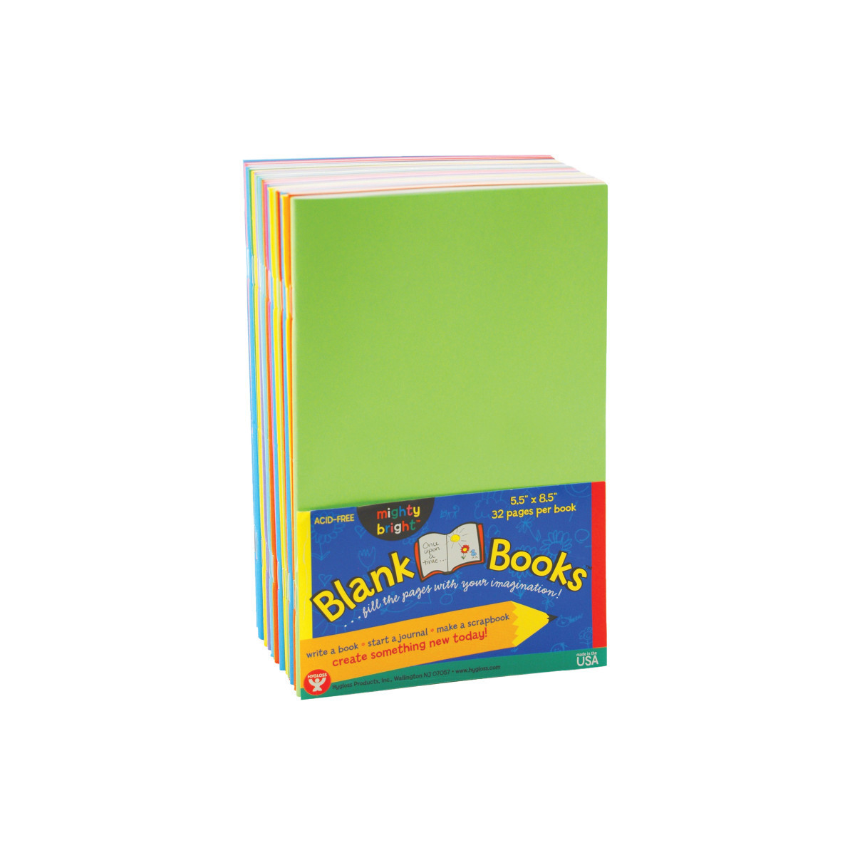 These colorful paperback books are made of Bright Tag covers and filled with 32 pages of white bond paper. The 5.5 x 8.5 books are perfect for creative writing, journals, etc. Kids and adults alike can benefit from these blank books perfect for containing all the thoughts you want to save on paper. Pack of 20.