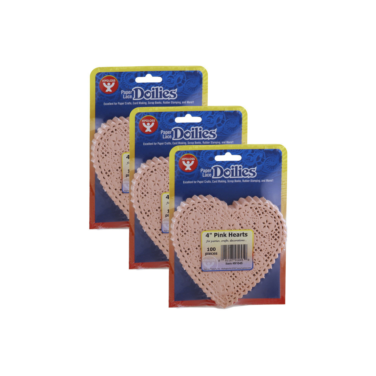 Our heart doilies can be used to make holiday greeting cards for Mothers Day, Valentines Day, and anniversaries. Paper doilies are also unique for creating elegant invitations for special occasions such as parties, graduations and dinners. Use our decorative heart doilies for crafts projects, table settings, card making and other projects where hearts will add warmth and color. Doilies measure 4". Each pack includes 100 doilies. Sold as 3 packs for a total of 300 doilies.