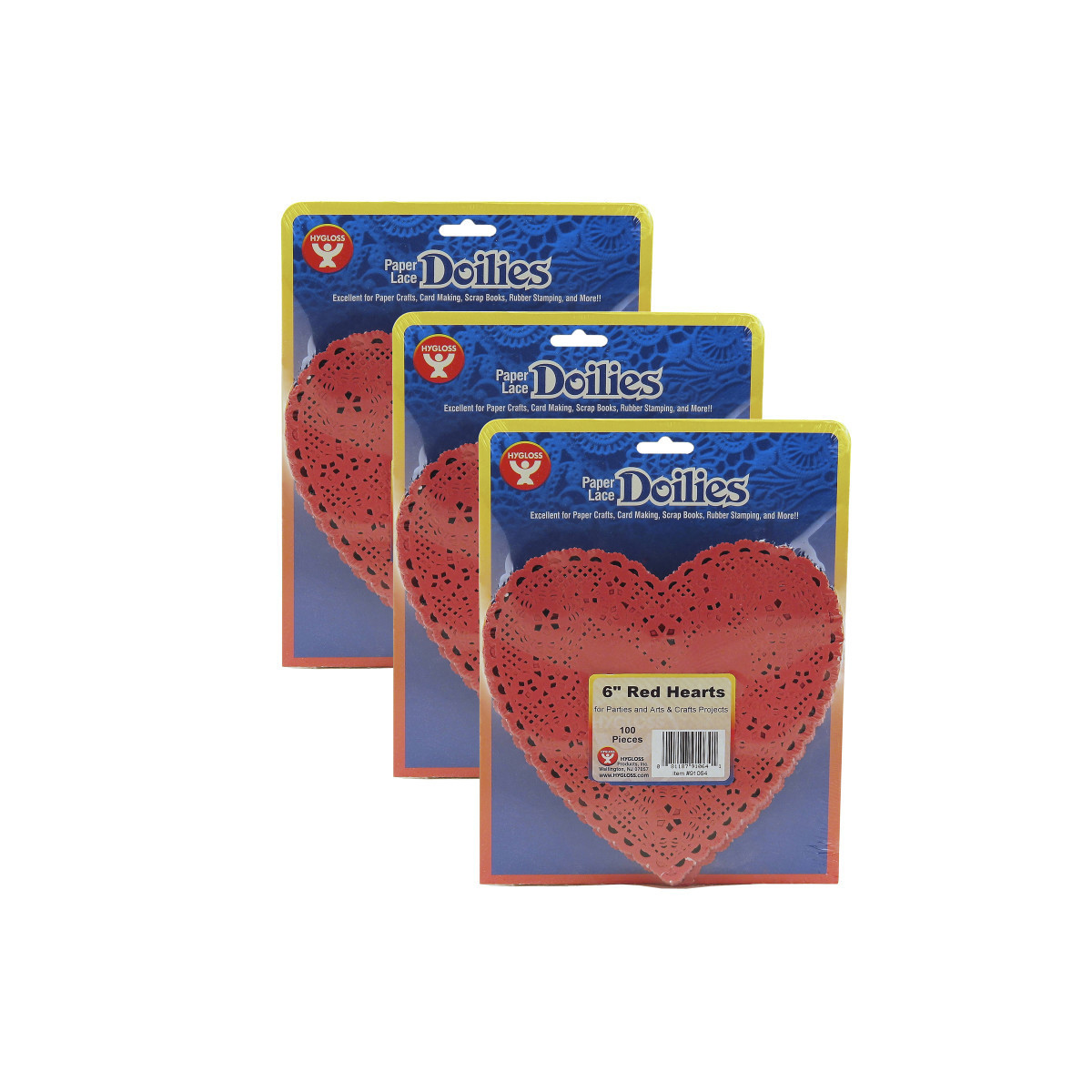 Our heart doilies can be used to make holiday greeting cards for Mothers Day, Valentines Day, and anniversaries. Paper doilies are also unique for creating elegant invitations for special occasions such as parties, graduations and dinners. Use our decorative heart doilies for crafts projects, table settings, card making and other projects where hearts will add warmth and color. Doilies measure 6". Each pack includes 100 doilies. Sold as 3 packs for a total of 300 doilies.