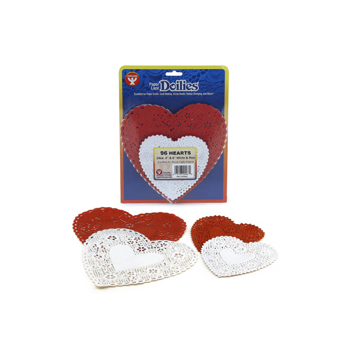 Our heart doilies can be used to make holiday greeting cards for Mother's Day, Valentine's Day, and anniversaries. Paper doilies are also unique for creating elegant invitations for special occasions such as parties, graduations and dinners. Use our decorative heart doilies for crafts projects, table settings, card making and other projects where hearts will add warmth and color. Each pack includes 96 doilies: 24 each of read and white, 4" and 6".