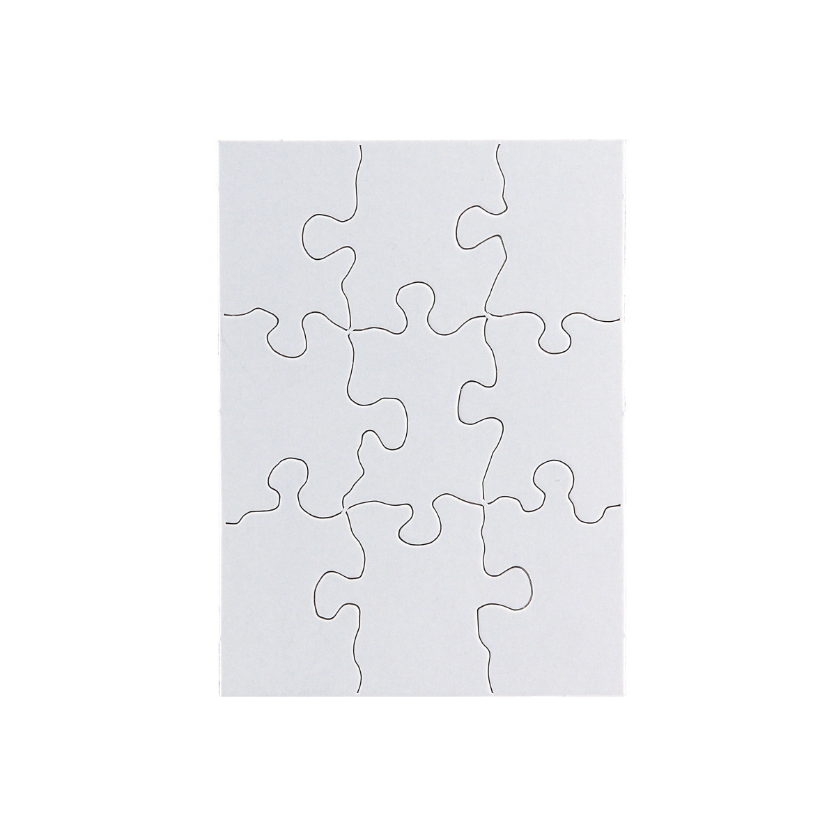 These blank puzzles can be used for artwork, leisure time activities, group projects, visual aids. The puzzles can be filled in with drawings or messages done with crayons, pens, watercolors, felt-tip markers, etc., or rubber stamped. These puzzles are made of heavy weight cardboard, glossy white on front and matte white on reverse side. Puzzles can be sealed with shellac or Mod-podge and displayed, or broken up and mailed to be assembled by the recipient. Puzzles measure 4" x 5-1/2". Each puzzle includes 9 pieces. Includes 24 puzzles.
