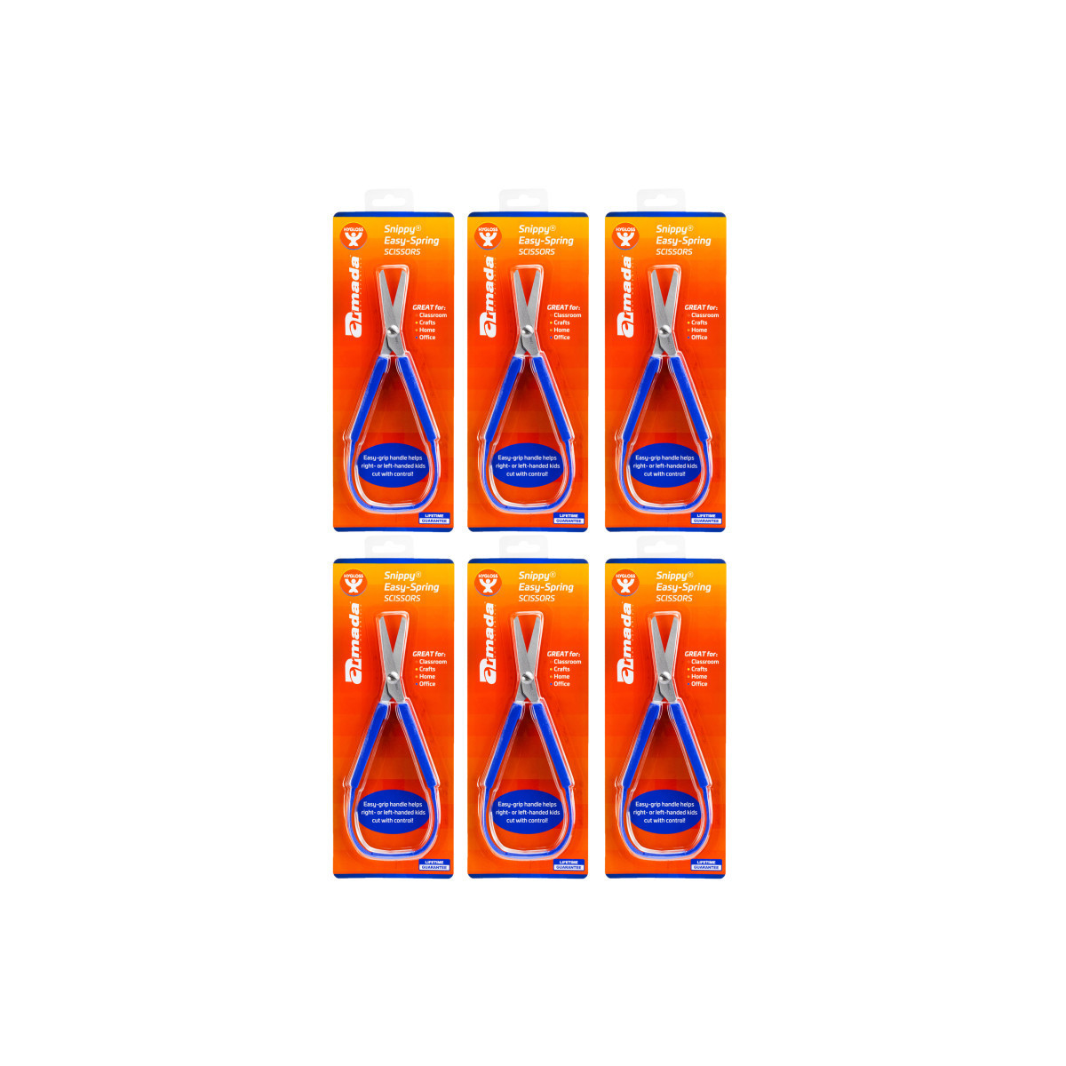 Our Snippy® Spring Scissors are ideal for adults with special needs or children who are developing motor skills. The stainless steel blades are attached to a plastic handle. The flexible plastic loop springs open after a cutting motion. Simply squeeze gently using the thumb and fingers or the fingers and palm of the hand. Designed for right or left handed use. Sold as a pack of 6.