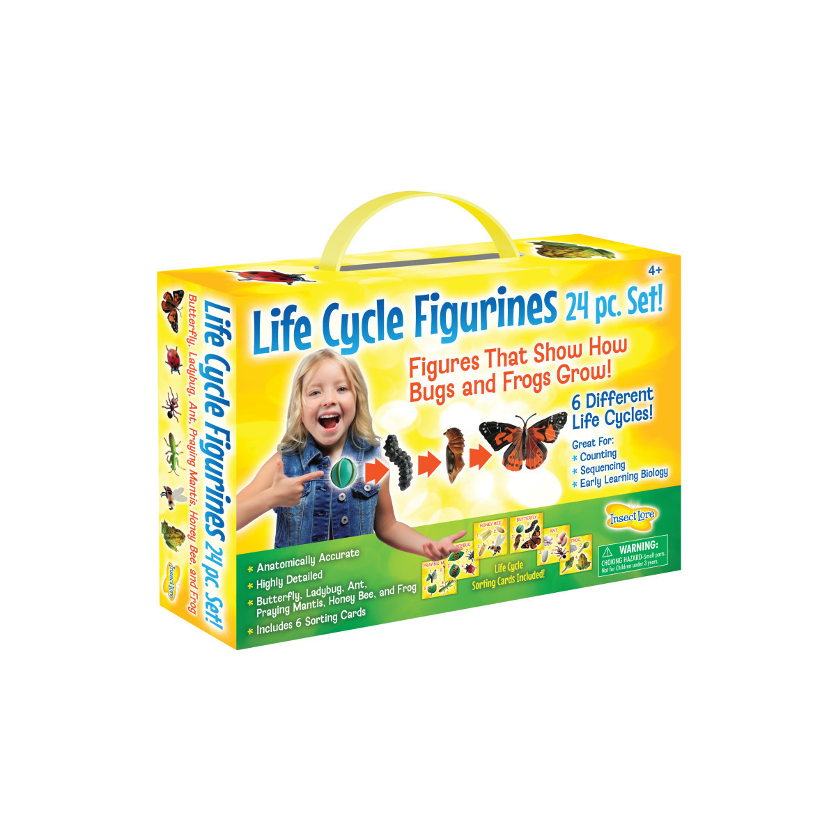 • Includes 6 life cycle stages - Butterfly, Ladybug, Honey Bee, Praying Mantis, Ant, and Frog