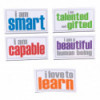Get your message to stick! Inspired Minds Magnet Booster Sets are intentional, printed simple, yet colorful, to offer an impactful and creative way for teachers to help children gain self-esteem and build character for a successful and fulfilling life. Magnets measure 2" x 3.5". Pack of 5.