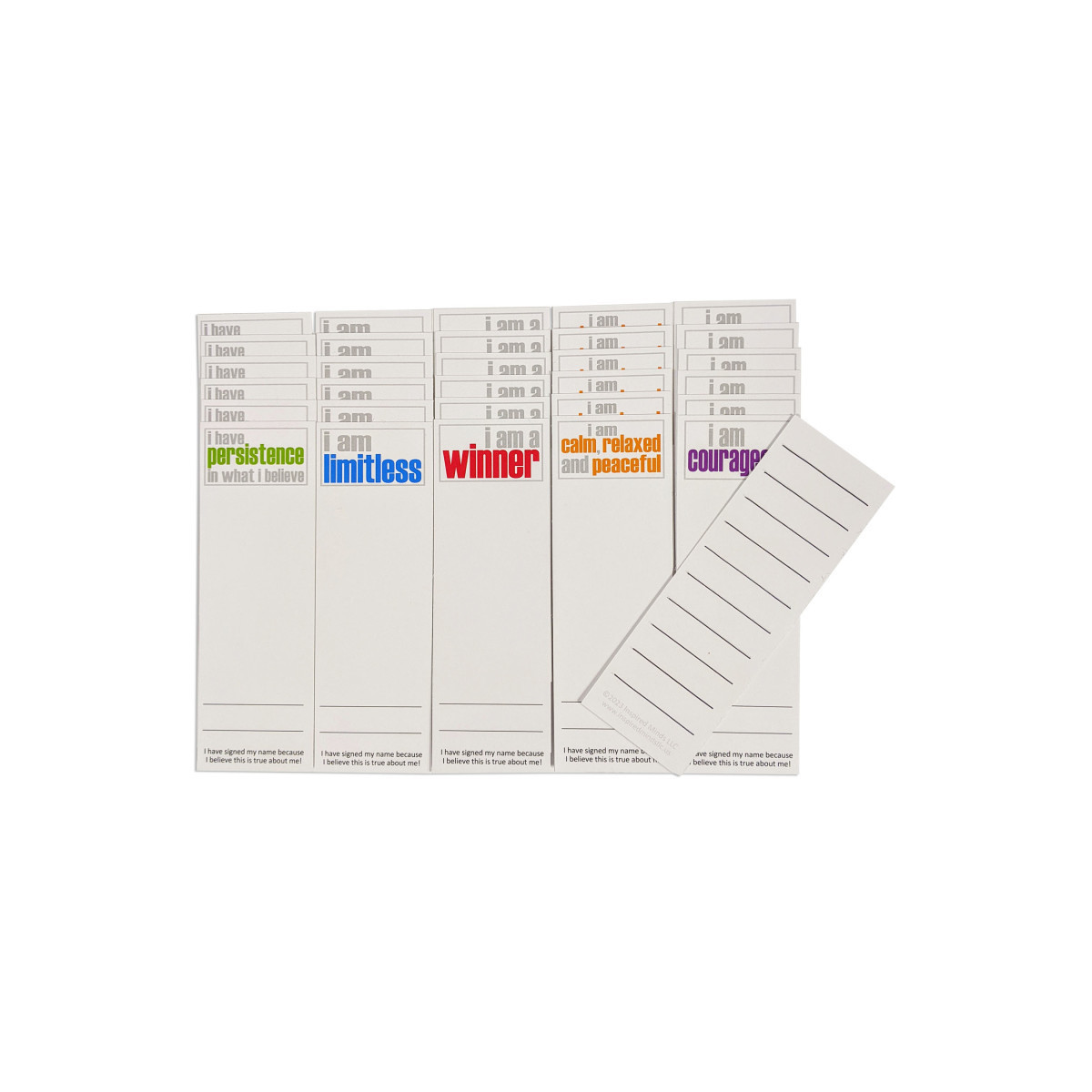 This Inspired Minds Hopefulness Booster Set consists of 30 Page Keepers. There are 5 statements intentionally printed simple, yet colorful, to offer an impactful and creative way to help gain hopefulness and build character to last a lifetime. These page keepers not only work as a daily reminder, but can be signed to take ownership of believing in yourself! Because these are uncoated, with the blank space in the front and lines on the reverse side, there are unlimited uses. Draw, color, add pictures, list books, friends, story content or favorite characters, record reading time, and the list goes on! Laminate as a keepsake! Page keepers measure 2" x 6". Set has 6 each of the 5 titles that match all Hopefulness Booster Sets.
