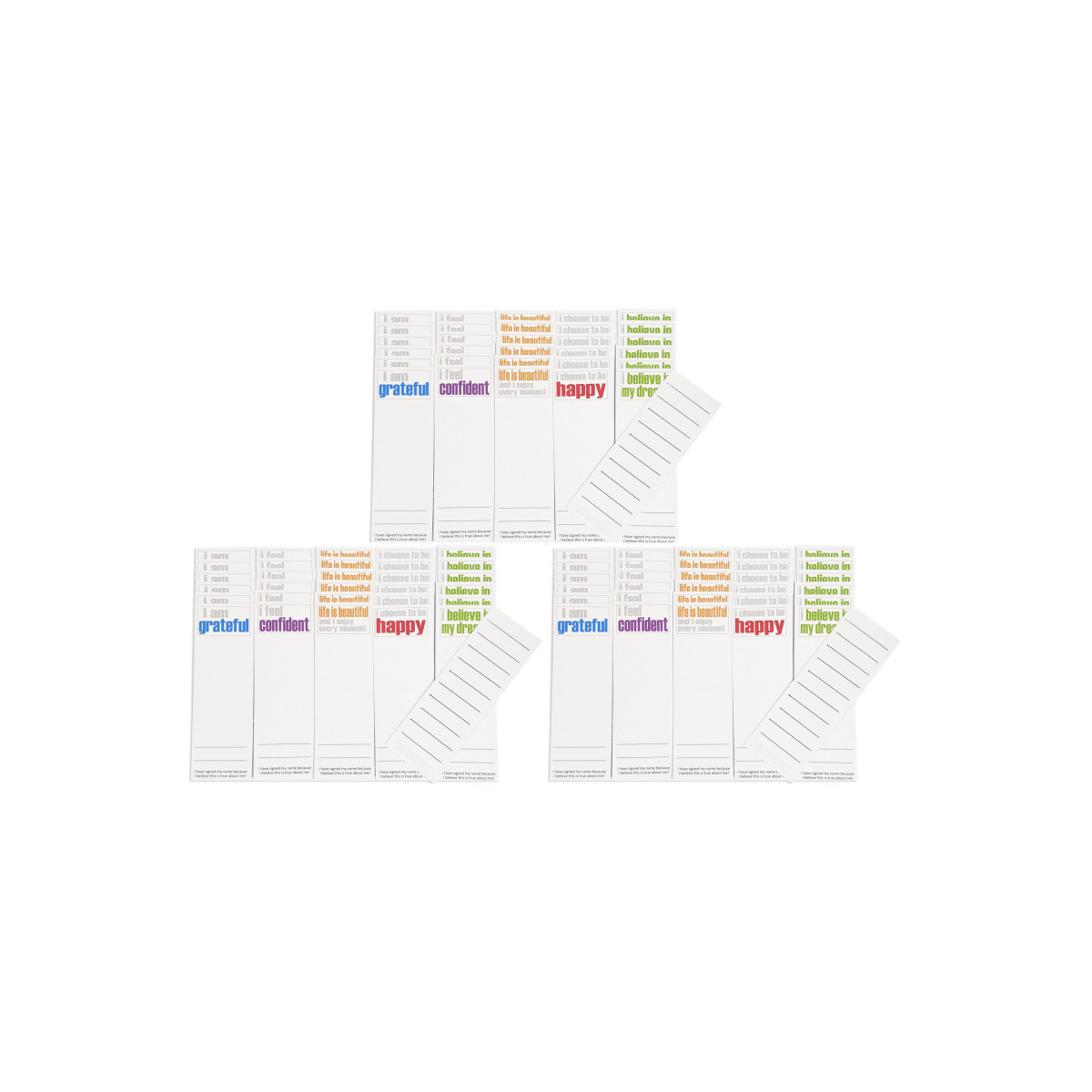 Each Inspired Minds Confidence Booster Set consists of 30 Page Keepers. There are 5 statements intentionally printed simple, yet colorful, to offer an impactful and creative way to help gain confidence and build character to last a lifetime. These page keepers not only work as a daily reminder, but can be signed to take ownership of believing in yourself! Because these are uncoated, with the blank space in the front and lines on the reverse side, there are unlimited uses. Draw, color, add pictures, list books, friends, story content or favorite characters, record reading time, and the list goes on! Laminate as a keepsake! Page keepers measure 2" x 6". Each set has 6 each of the 5 titles that match all Confidence Booster Sets. Sold as 3 sets for a total of 90 page keepers.