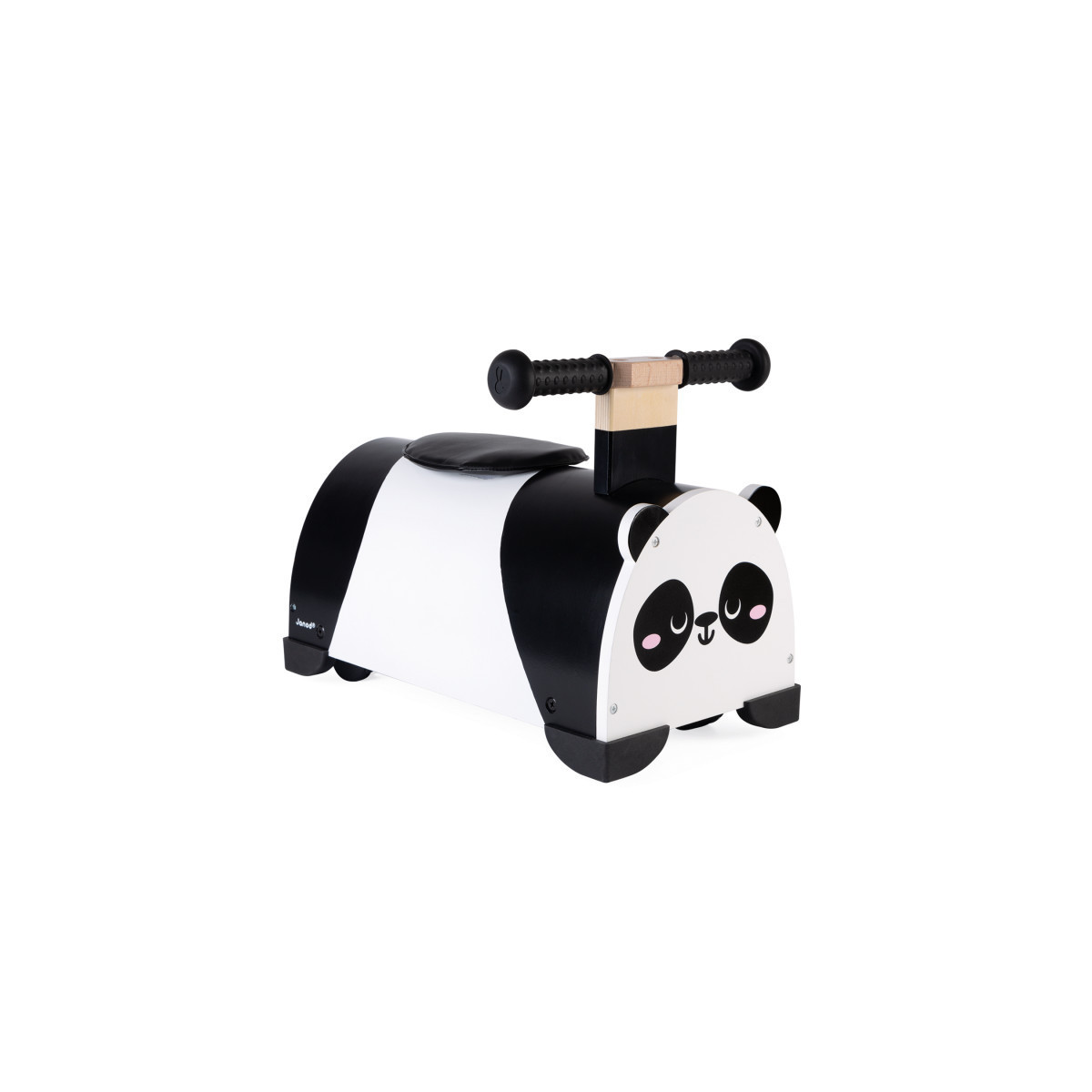 Wooden toy for children aged 12 to 36 months. This attractive, trendy panda-shaped ride-on toy will become the ideal companion to straddle! It will help your child to manage their supports while enabling them to undertake 360 degree explorations of the world around them. Children may use the compartment, located to the rear, to bring along their toys and plush dolls wherever they go. The ergonomic handles ensure optimal grip for little hands. The most important features are the 4 silicone corners that will protect furniture and walls from occasional collisions.
