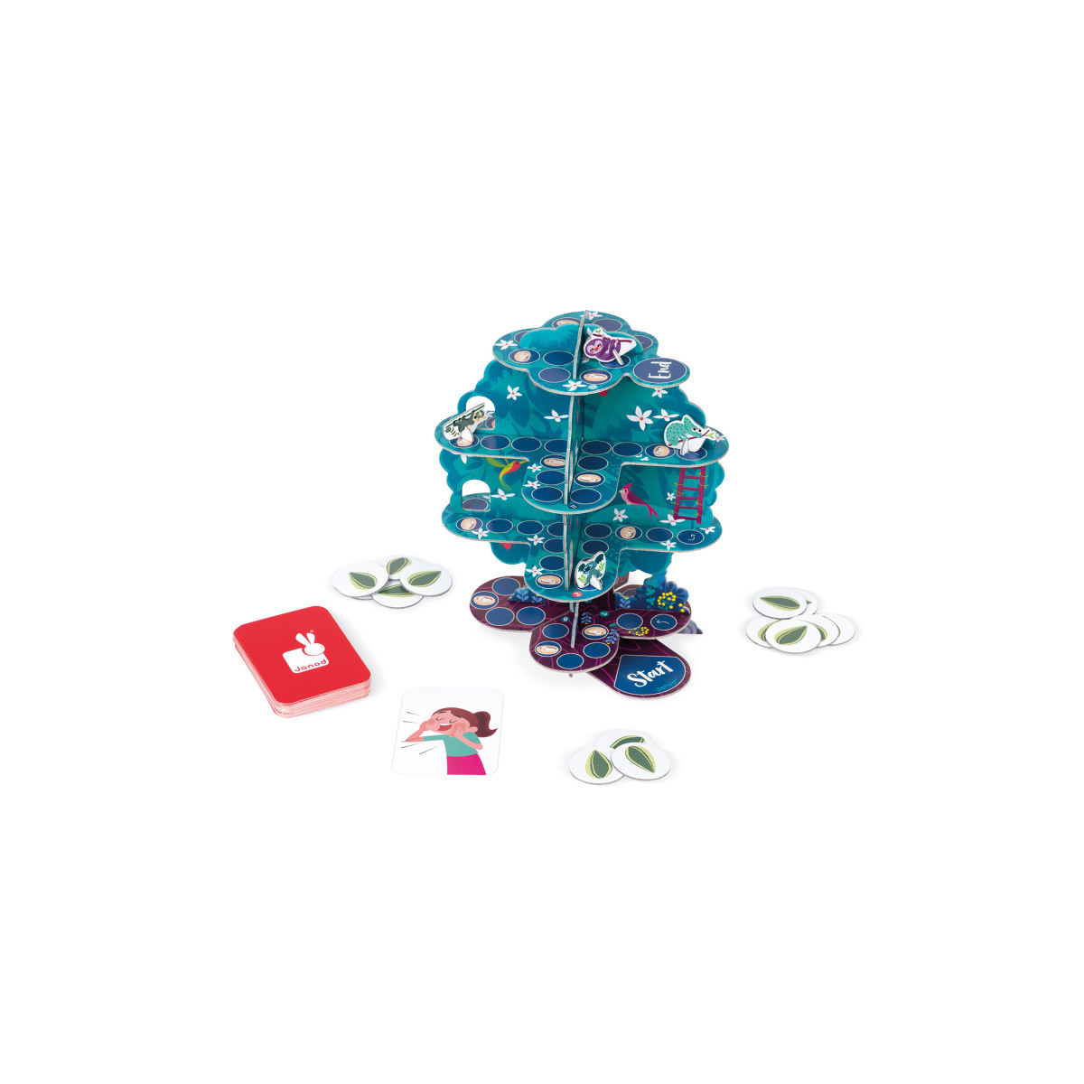 A follow-the-path game for children 6 years and up. The Tree of Life needs you! Collect as many seeds as you can to replant the forest! Complete the various missions, collect seeds, and climb as quickly as possible to win the match. But beware, all it takes is a broken branch or a slippery tree to come tumbling down! Time required: 30 min. 2 to 4 players. Includes 3D tree, 4 cardboard animals, 80 tokens and 40 cards. Plant-based inks. Made in France.