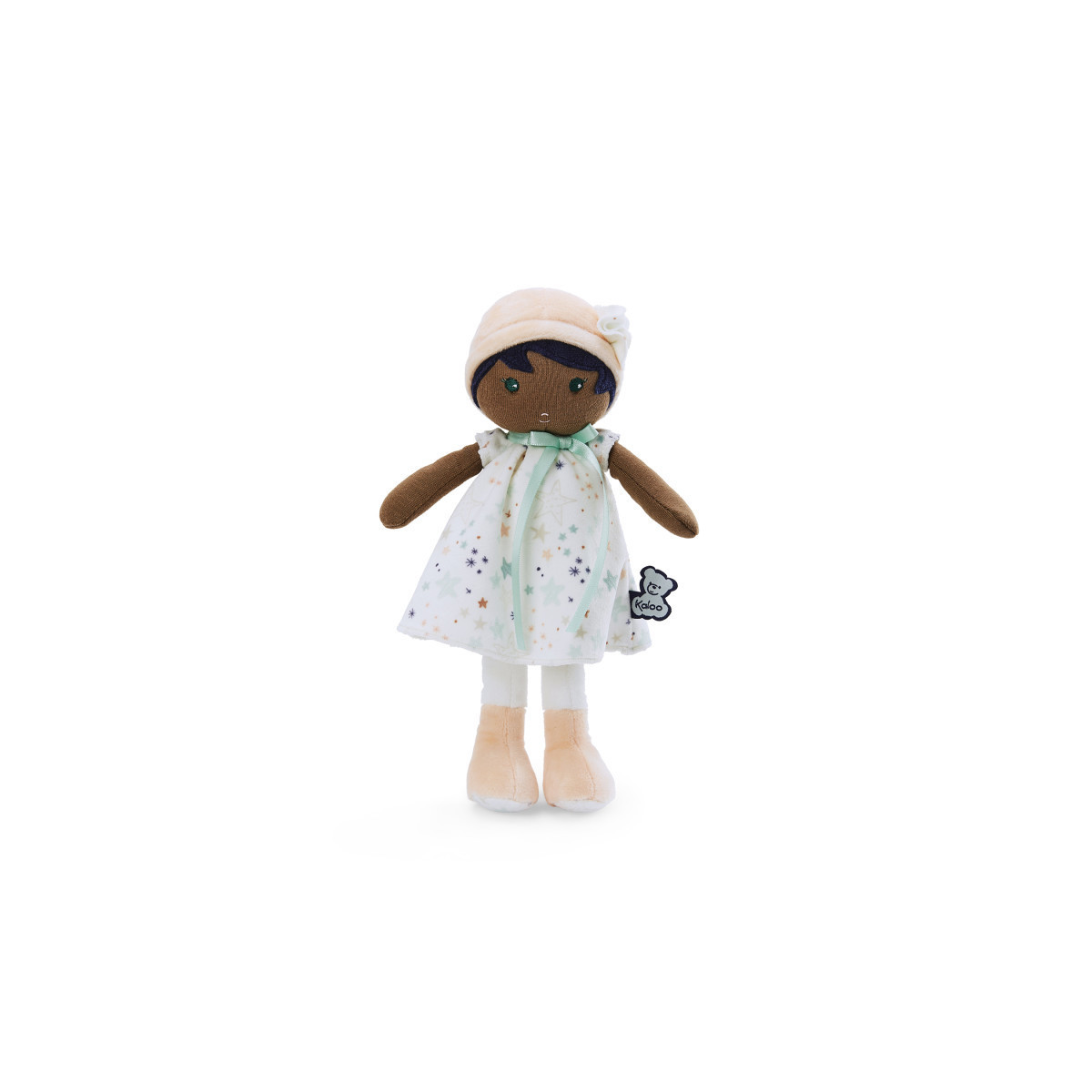 Manon is a larger 12.48-inch doll with a soothing presence. Her soft fabric and gentle colors are perfect for snuggles. Name ribbon on the back for personalization. Machine washable and safe for babies from birth. A comforting and stylish friend. Ideal size for cuddling.