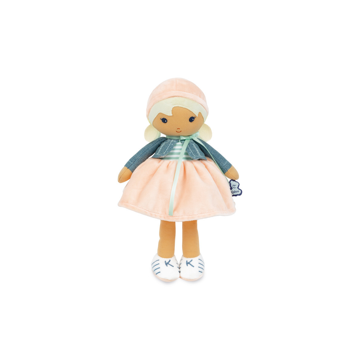 Featuring a trendy look, Chloé measures 12.36 inches and evokes a sense of a modern girl who is at ease with herself. Her matte tone makes her golden hair stand out and her peach- colored skirt produces a relaxed look. You'll love her chicly-styled skirt and cool sneakers! Machine washable.