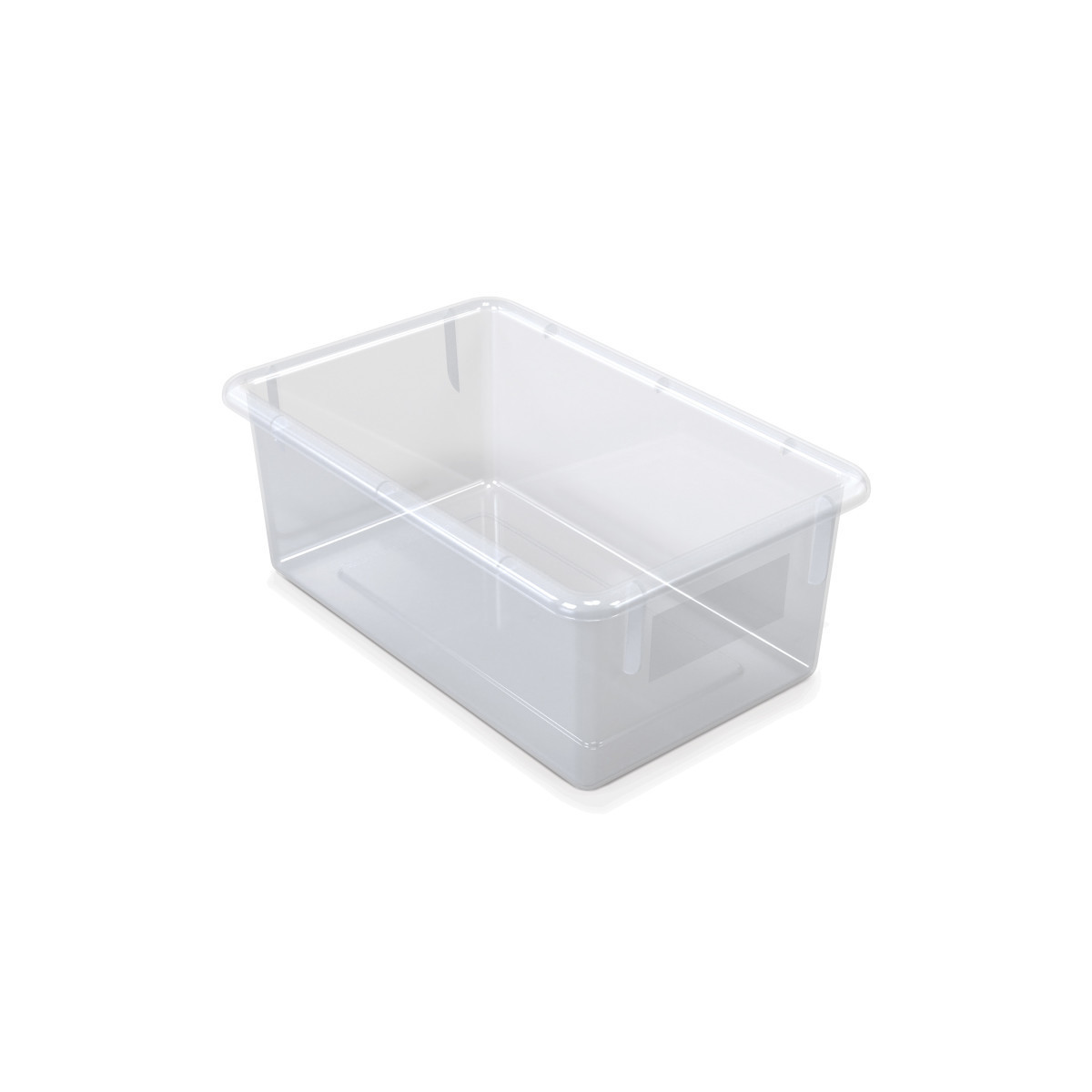 Super strong bins are ideal for storage in the classroom. Indoor use only. Non-toxic and impact resistant. Matching lids available. Cubbie Trays measure 8.6"W x 13.5"D x 5.3"H.