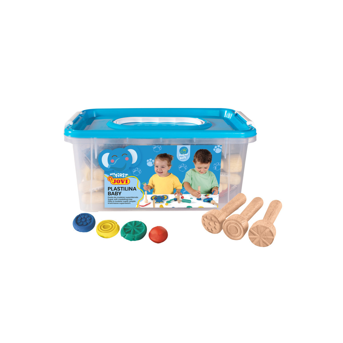 Experience the joy of creativity with our modeling clay. Perfect for playtime, art projects, or sensory exploration, it's the ultimate companion for young artists and creators. Unlock the boundless potential of your child's imagination with our plastilina modeling clay. This set includes 20 individually wrapped, 38 gram bars of plastilina modeling clay in 4 different colors, 9 wooden clay stamps, and a storage chest.