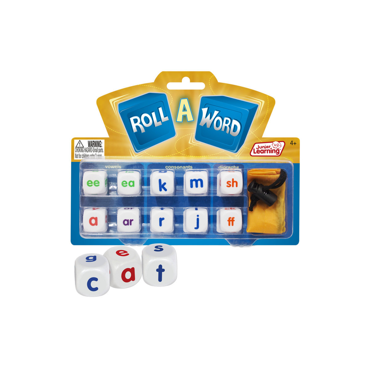 Help children develop spelling and word formation with Roll A Word dice. Simply roll the dice and let the letters guide you. Firstly roll the dice and view the upper face, then group dice together to form words. Choose the dice you want to use and the best dice to start your word. Contains 10 dice and 1 handy carry sack. Ages 4-9 years. WARNING: CHOKING HAZARD - SMALL PARTS. Not for children under 3 yrs.