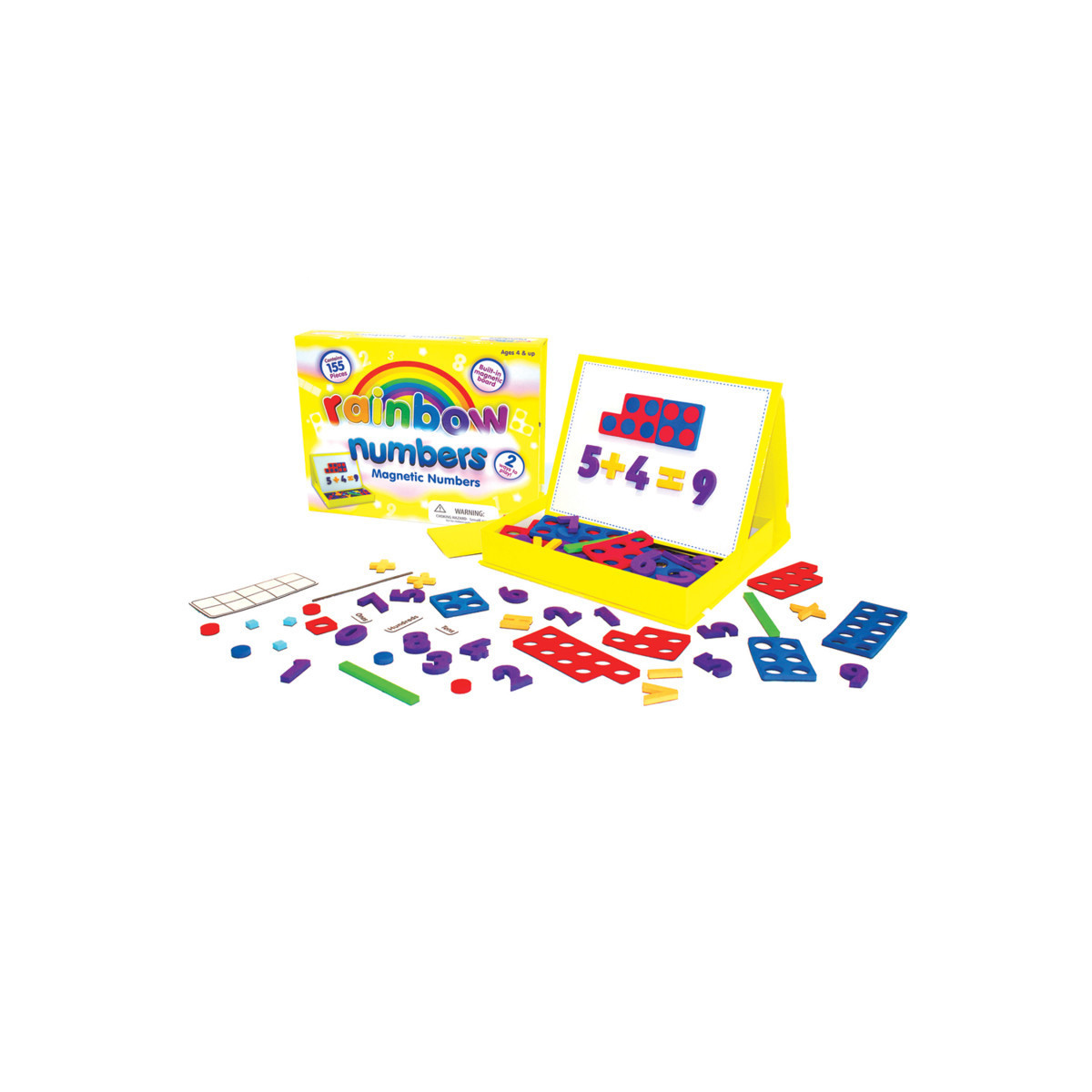 - Demonstrate mathematical concepts with this complete magnetic number set in a self-contained box with a pop-up magnet board