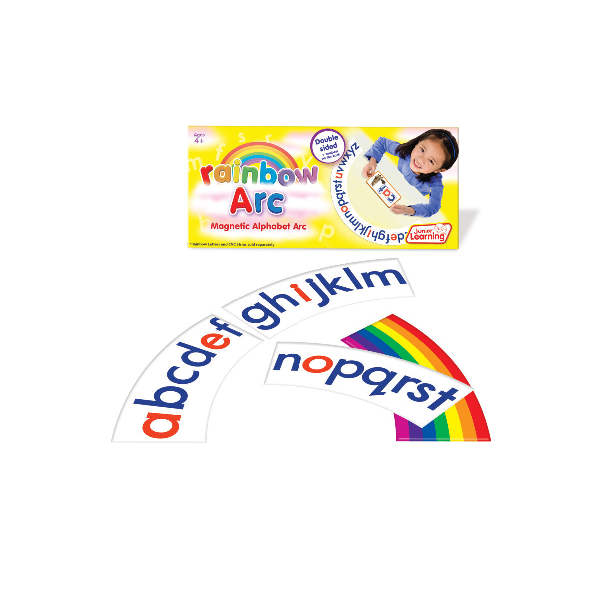 The Alphabet Arc is a double-sided magnetic arc, with the alphabet presented on one side and a rainbow presented on the other. Comes in four quadrants, which can also be used for teaching the sequencing of letters.