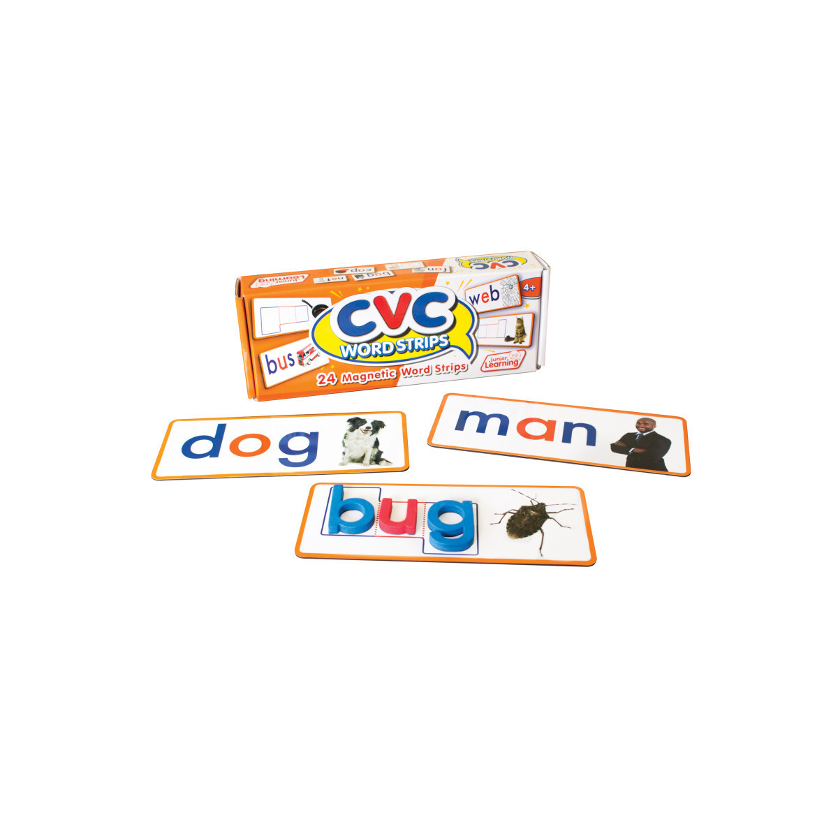 CVC Word Strips includes 24 magnetic word strips for building consonant-vowel-consonant words. Each strip has a photographic image and is double-sided with a word frame on one side and the word printed on the other. Perfect for self-correcting.