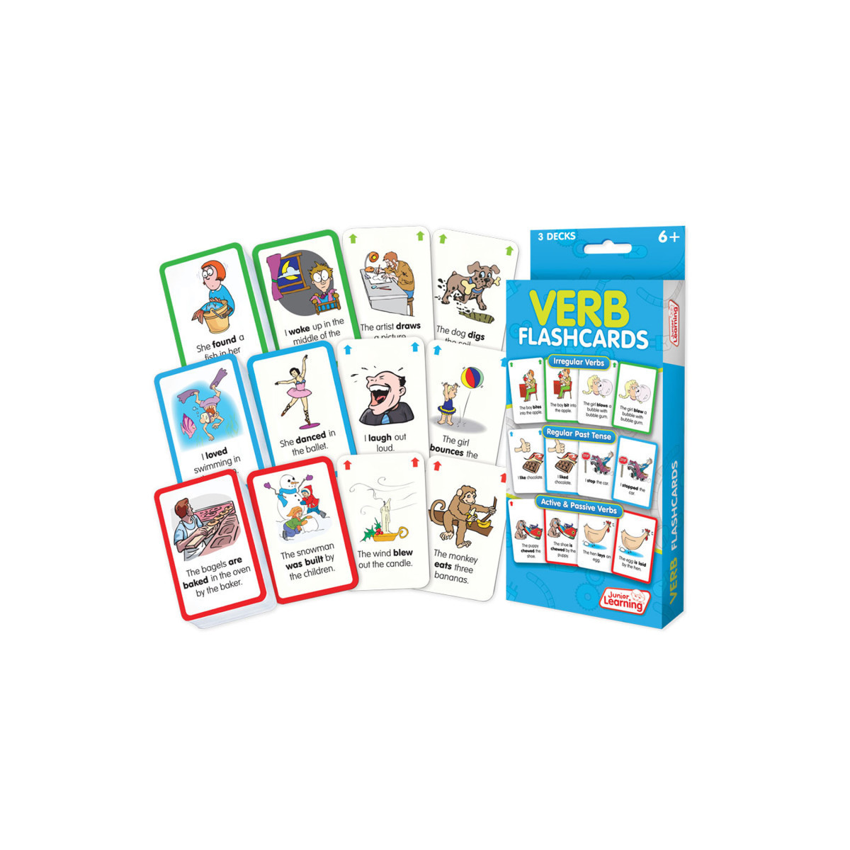 This set of flashcards includes 3 decks of 54 cards for teaching verbs (162 cards total). Topics include: irregular verbs, regular past tense and active & passive verbs. A perfect activity for independent or guided learning. Teaches fast, automatic recall. Ages 6+. Flashcards work with Flashbot (sold separately).