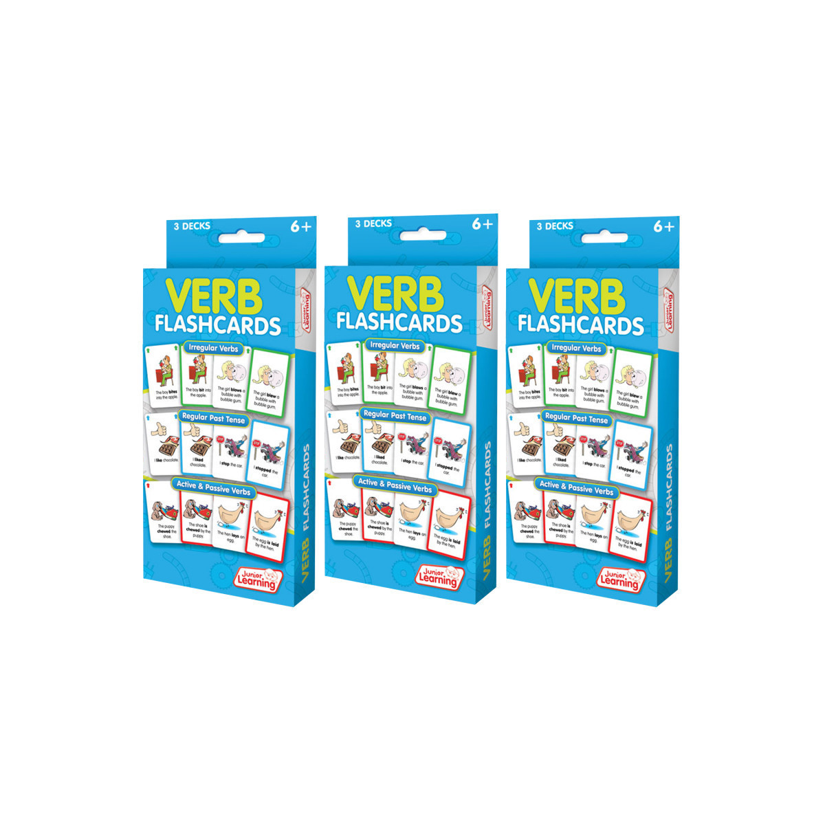 Each pack of flashcards includes 3 sets of 54 cards for teaching verbs (162 cards total). Topics include: irregular verbs, regular past tense and active & passive verbs. A perfect activity for independent or guided learning. Teaches fast, automatic recall. Ages 6+. Flashcards work with Flashbot (sold separately). Sold as 3 packs for a total of 486 cards.