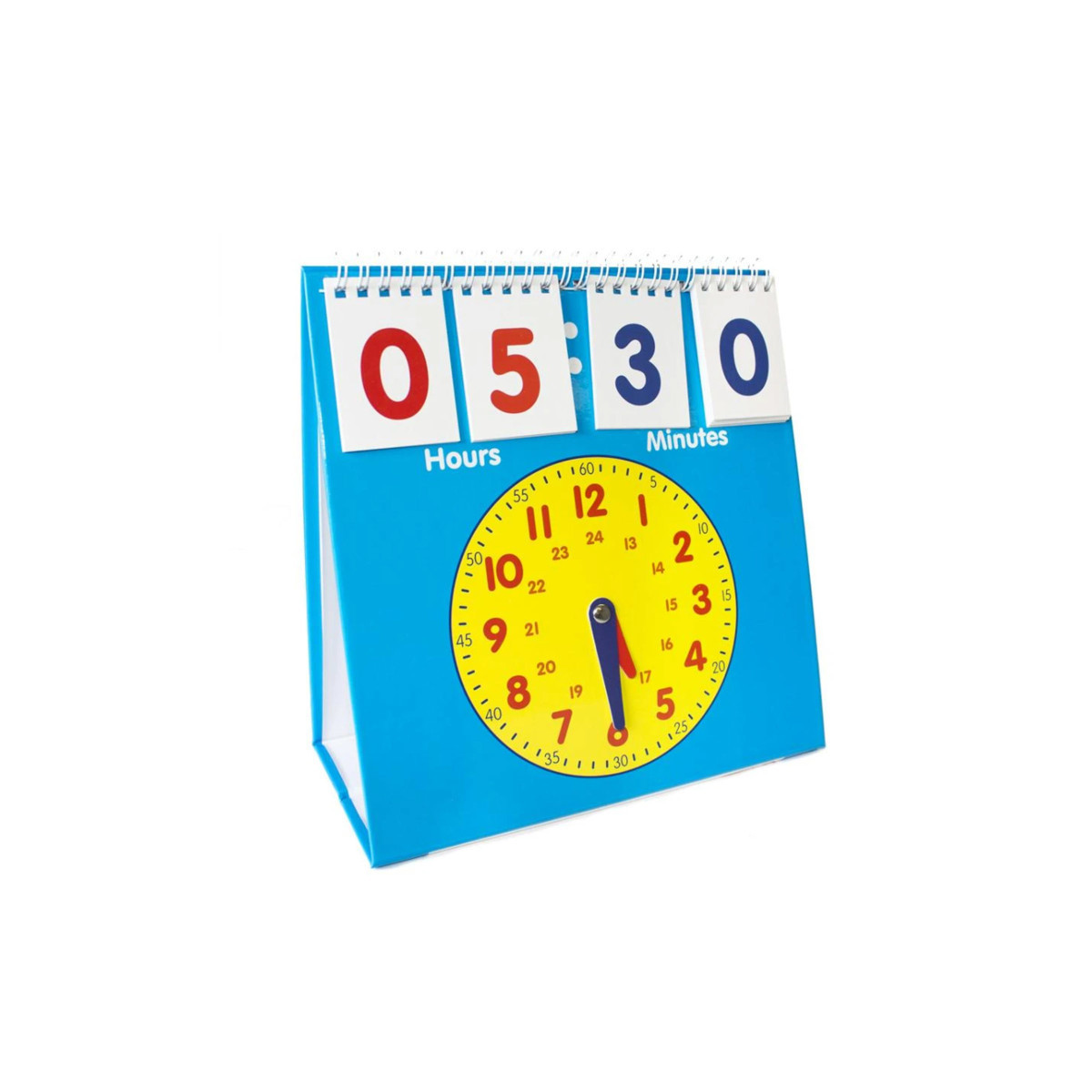 Time Flips is a dual purpose flip stand with both digital and analog clocks. Color-coded with hours in red and minutes in blue. Covers both 12 and 24 hour clocks. Analog clock has moveable hands. A fun way to bridge understanding of analog and digital time.