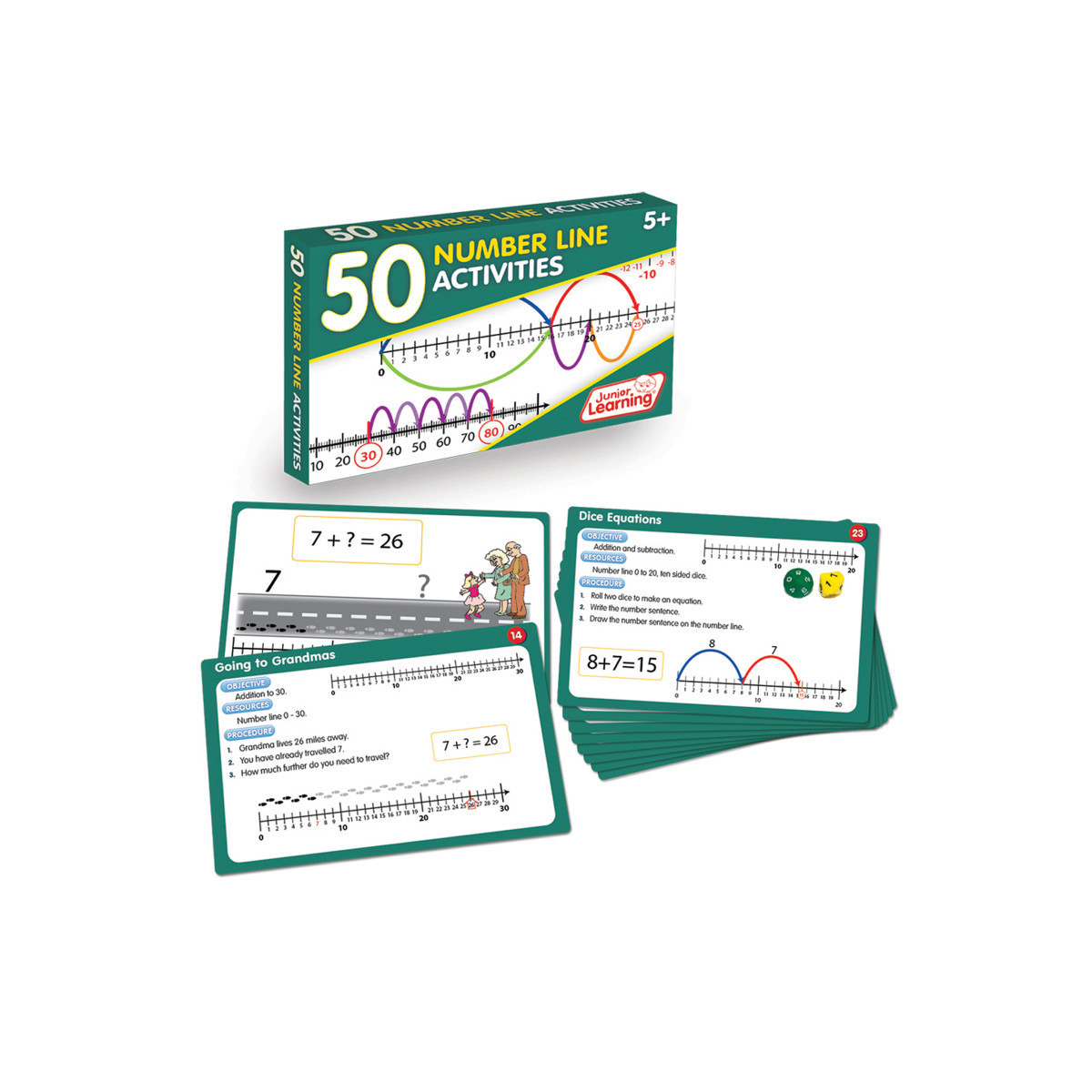 - 50 double sided activity cards for teaching with number lines.
