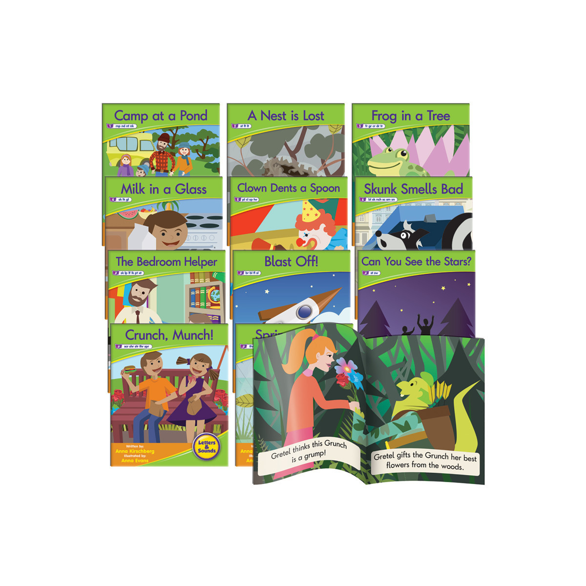 Blend readers introduce 38 different adjacent consonants (or blends). These readers have been written using a strictly controlled vocabulary. Text uses only decodable regular words (according to a week by week progression) along with 'tricky words'. Tricky words are words frequently used that are not decodable. Set includes 12 fiction readers, each with colorful illustrations.