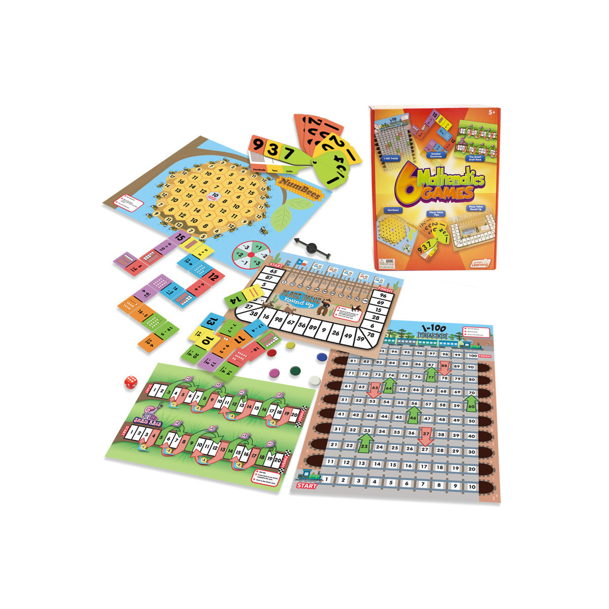 - This value pack of 6 mathematics games contains 4 board games, 18 dominoes, 1 flipper, spinner, die and counters