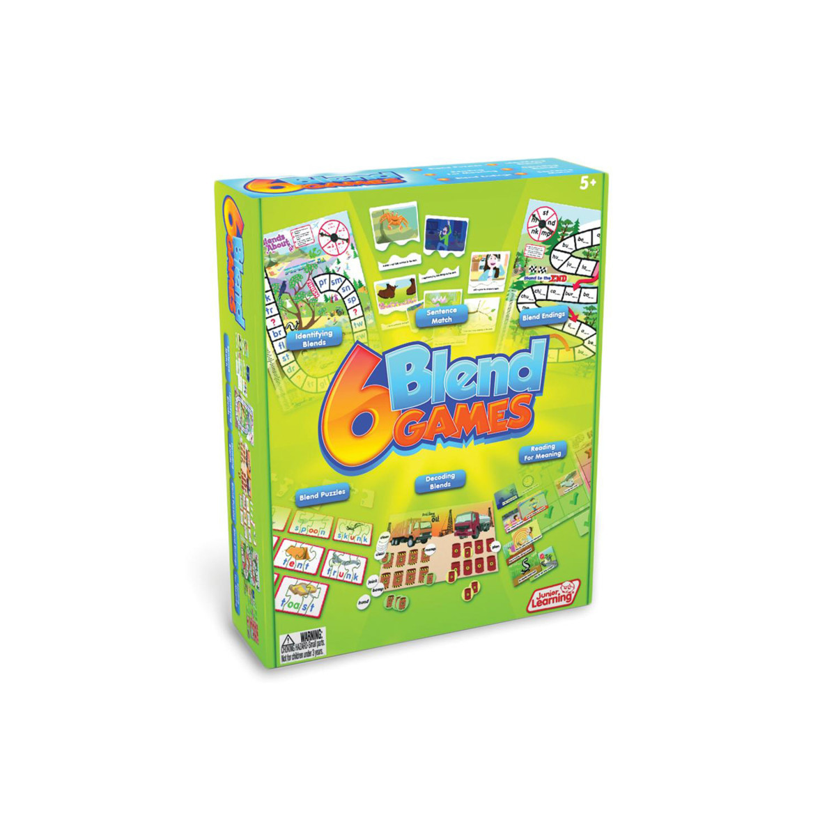 This set of educational games and activities is designed to teach blends. Topics include: identifying blends, blend endings, decoding blends and various reading tasks containing blends. This value pack contains 2 board games, 2 matching games, 18 word puzzles, die, counter and spinner. Each game has self-correcting elements. Contains a game guide with instructions. Encourages children to work together to develop their phonics skills. Ages 5+. Grade PK-1.