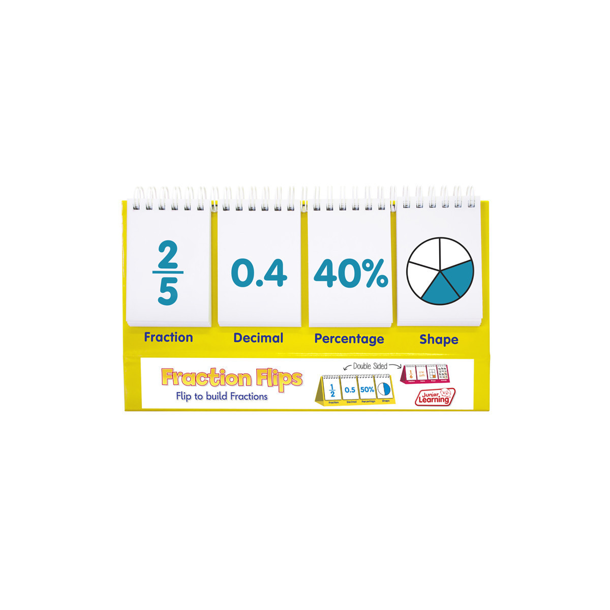 Fraction Flips is a double-sided flip stand with different fraction examples on one side and equivalence (fractions, decimals and percentages) on the other. Pages are color-coded according to their corresponding equivalence which makes the book great for self-correcting.