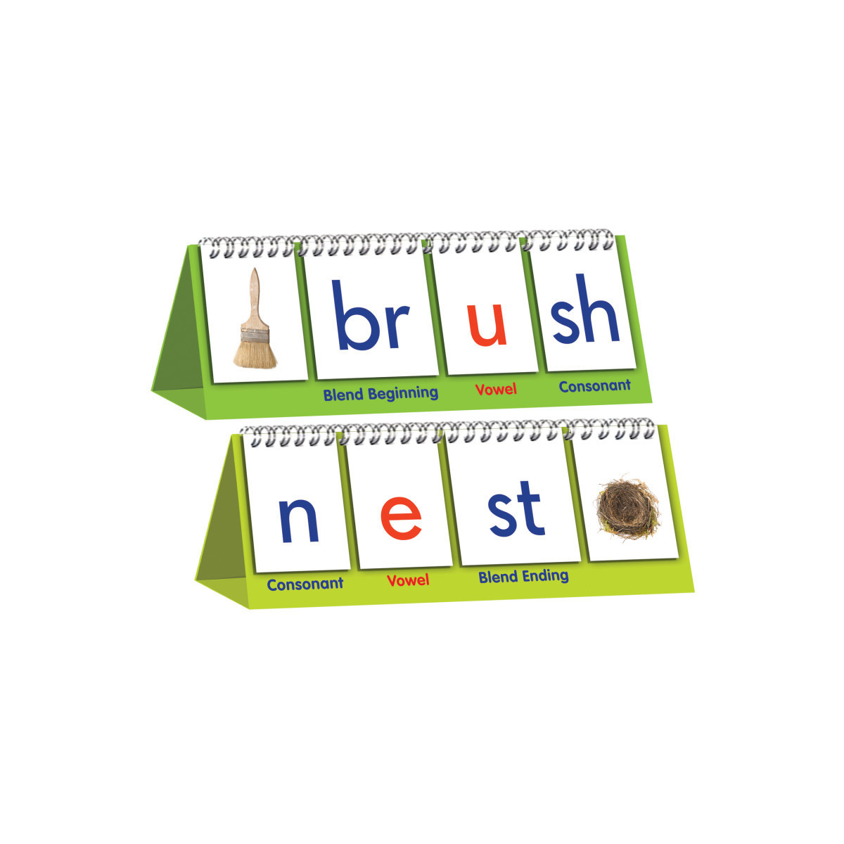 Blend flips is a double-sided flip stand, with blend beginnings on one side and blend endings on the other. Simply flip over pages to build new words. Photographic images are included for word building examples.