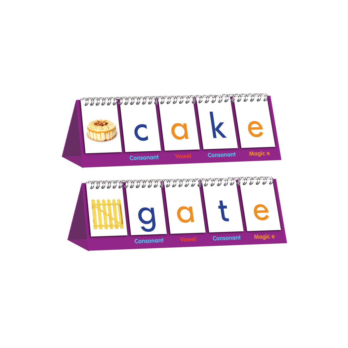 Magic E Flips is a double-sided flip stand for teach the split digraph (or magic e). Photographic images are included to provide word building examples. Spell new words by flipping over pages and show how the final 'e' makes the short vowel say its name.